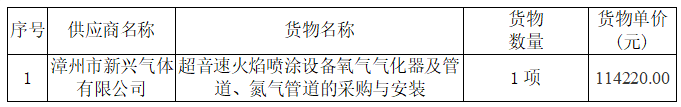 龍軸集團超音速火焰噴涂設備氧氣氣化器及管道、氮氣管道的采購與安裝中標公告